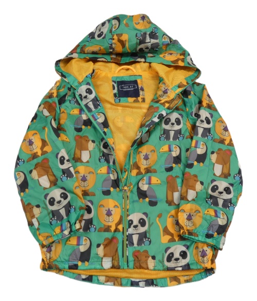 Zelená kostkovaná šusťáková jarní bunda se zvířátky a kapucí Next