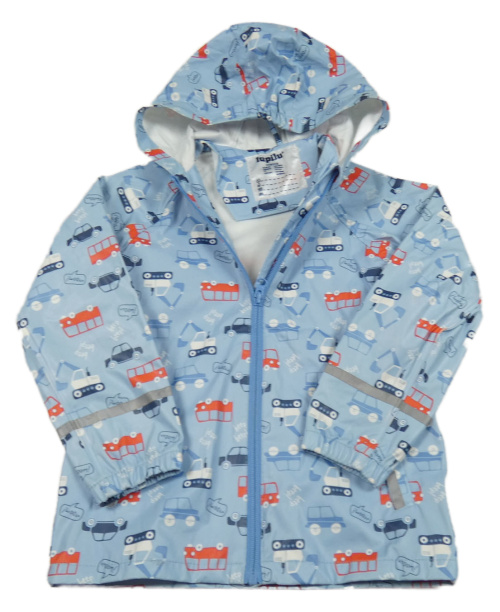 Světlemodrá nepromokavá bunda s auty a kapucí Lupilu