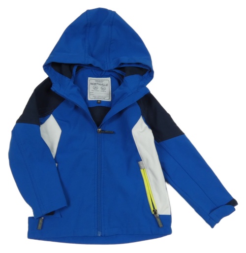 Modro-bílá softshellová bunda s nápisem a kapucí