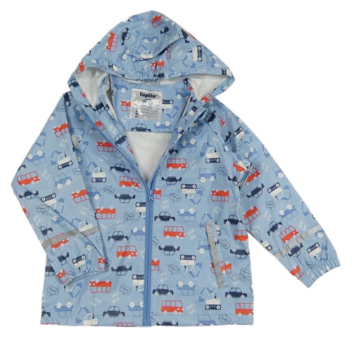 Světlemodrá nepromokavá bunda s dopravními prostředky a kapucí Lupilu