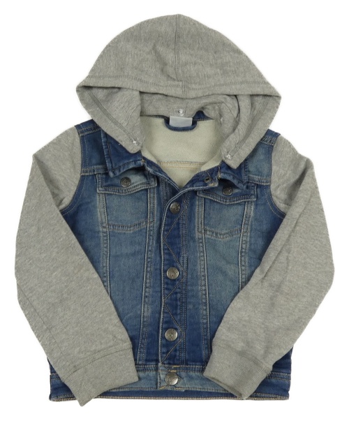 Tmavomodro-šedá riflová bunda s teplákovými rukávy a kapucí Pocopiano