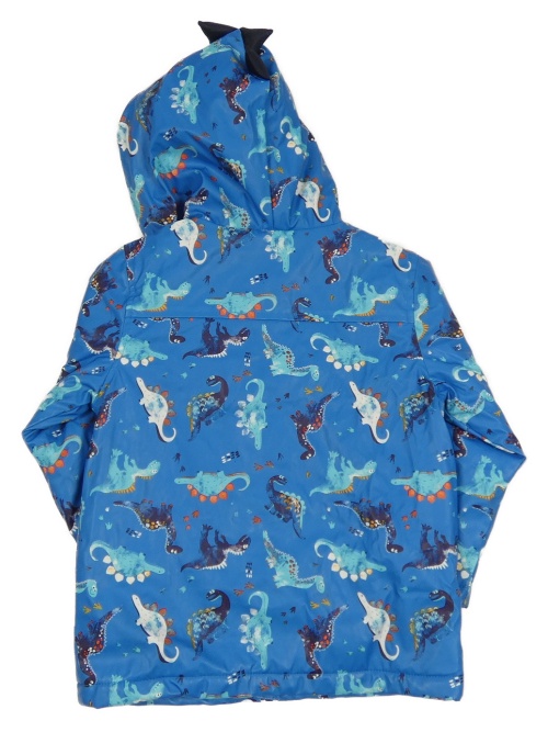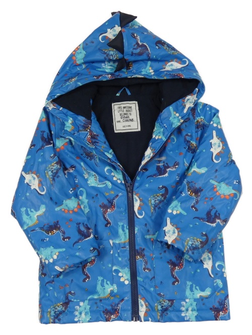 Modrá nepromokavá zateplená bunda s dinosaury a kapucí Matalan