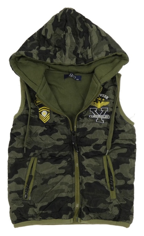 Khaki-černá army šusťáková zateplená vesta s kapucí MHD
