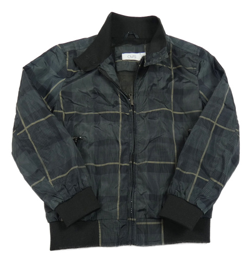 Tmavošedo-černo-šedobéžový kostkovaný šusťákový jarní bomber OVS