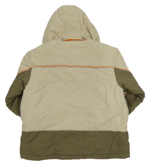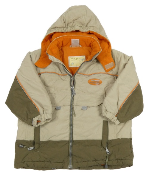 Béžovo-khaki-oranžová šusťáková zateplená bunda s kapucí