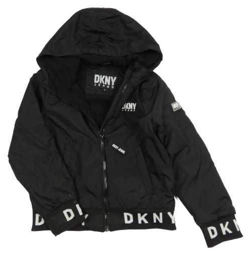 Černá šusťáková zateplená bunda s logem a kapucí DKNY