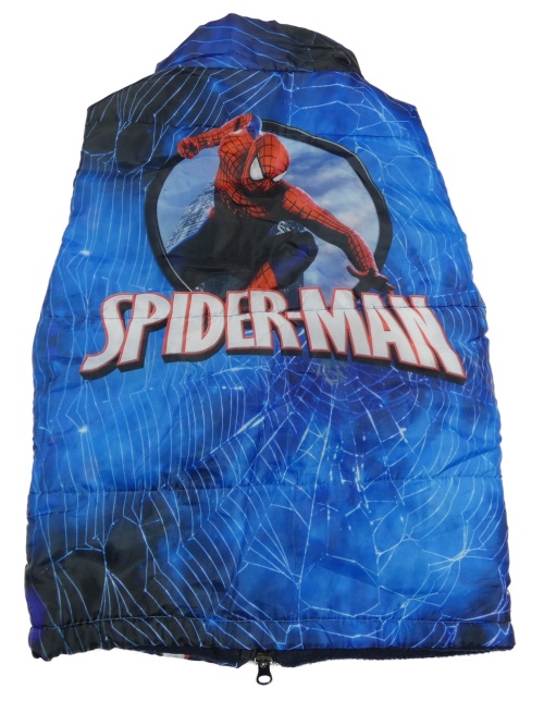Modrá šusťáková zateplená vesta se Spidermanem