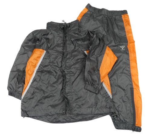 2 set - tmavošedo-oranžová šusťáková jarní bunda + šusťákové kalhoty