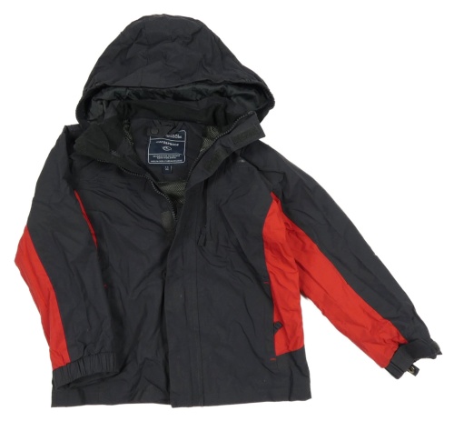 Černo-červená kostkovaná šusťáková funkční jarní bunda s odepínací kapucí MOUNTAIN WAREHOUSE