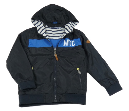 Tmavomodro-modrá šusťáková jarní oboustranná bunda s kapucí Mitch