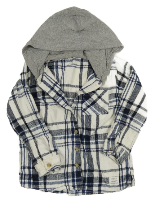 Bílo-tmavomodrá kostkovaná košilová bunda s kapucí Matalan