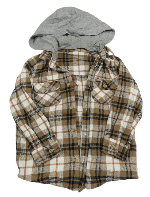 Hnědo-bílo-černá kostkovaná košilová bunda s kapucí Matalan
