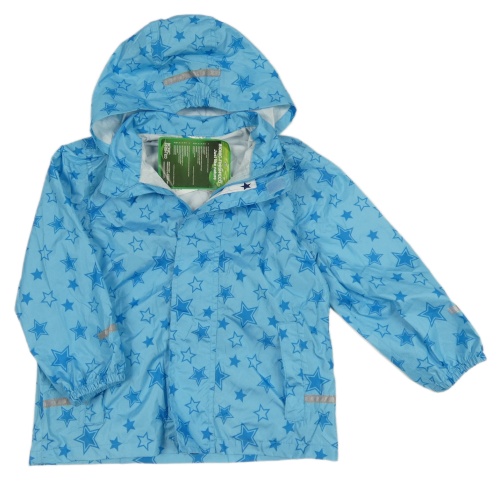 Nové - Modrá šusťáková nepromokavá bunda s hvězdami a kapucí Papagino