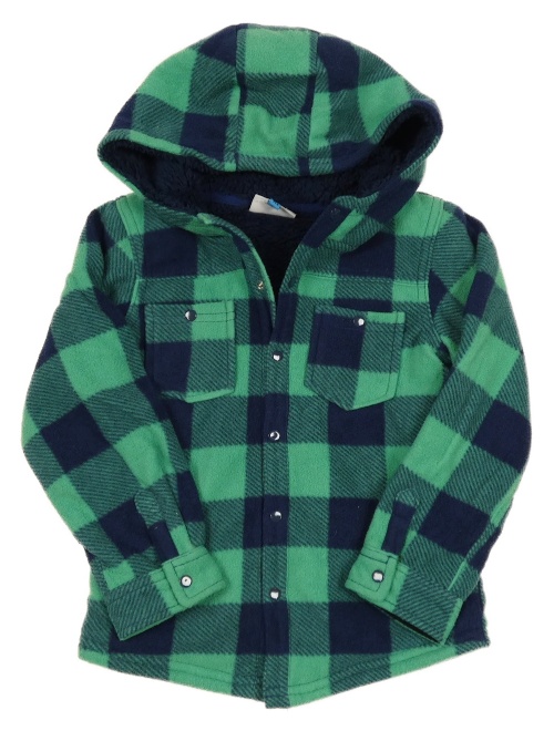 Zeleno-tmavomodrá kostkovaná fleecová zateplená košilová bunda s kapucí huLLabaLOO
