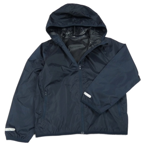 Tmavomodrá šusťáková nepromokavá bunda s kapucí