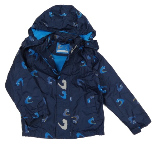 Tmavomodrá šusťáková jarní bunda s dinosaury a kapucí Pocopiano