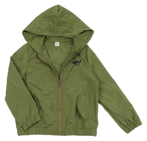 Khaki šusťáková bunda s dinosaurem a kapucí Shein