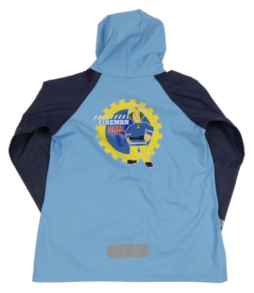 Světlemodro-tmavomodrá nepromokavá bunda s Hasičem Samem a kapucí