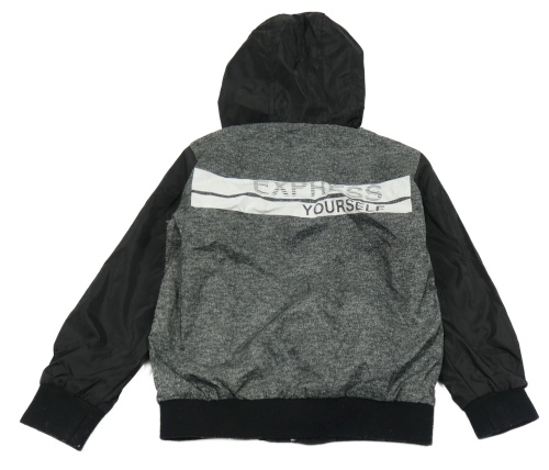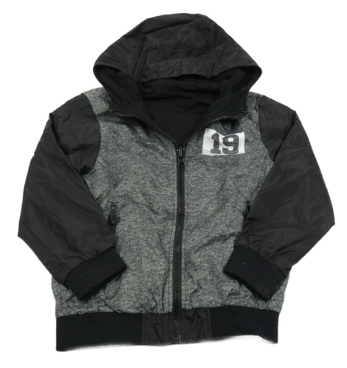 Černo-šedá melírovaná šusťáková jarní bunda s číslem kapucí Pocopiano