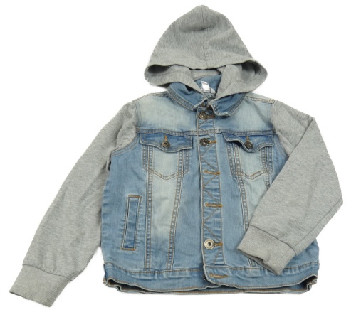 Světlemodrá riflová bunda se šedými melírovanými teplákovými rukávy a odepínací kapucí dodipetto