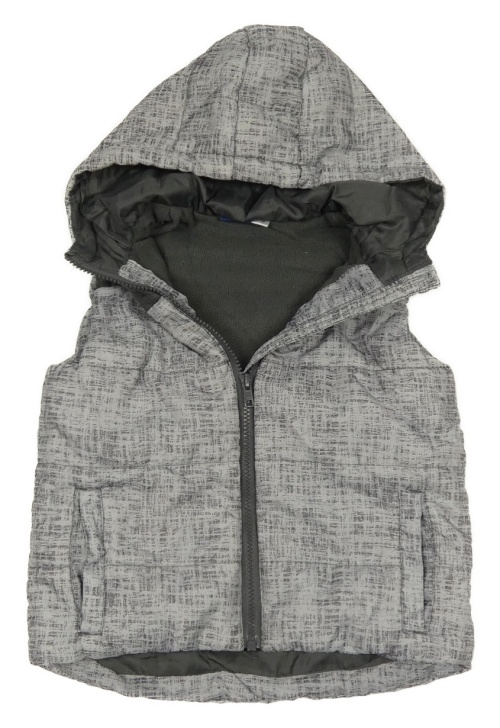 Šedá vzorovaná šusťáková zateplená vesta s kapucí Lupilu