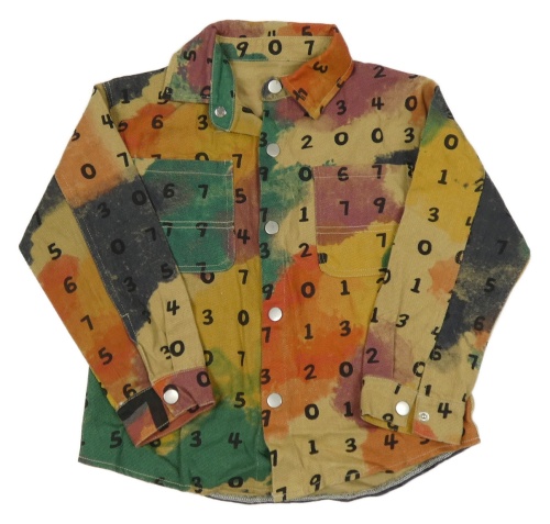 Barevná batikovaná riflová košilová bunda s číslicemi