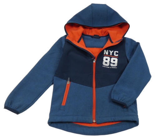 Tmavomodro-modrá softshellová bunda s nápisem a kapucí Mana