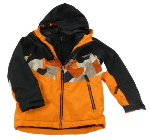 Černo-oranžovo-béžová šusťáková lyžařská funkční bunda se vzorem a kapucí Dare 2B