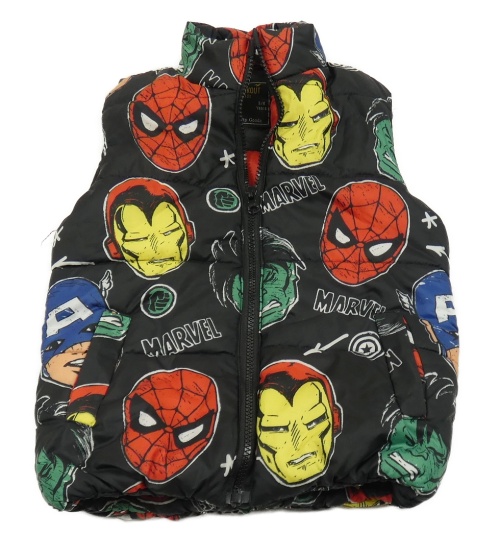 Černá šusťáková zateplená vesta se superhrdiny