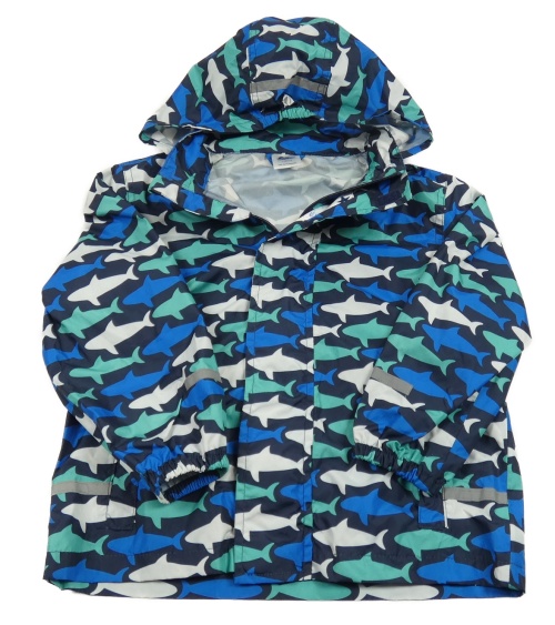 Tmavomodrá šusťáková nepromokavá bunda se žraloky a kapucí Papagino