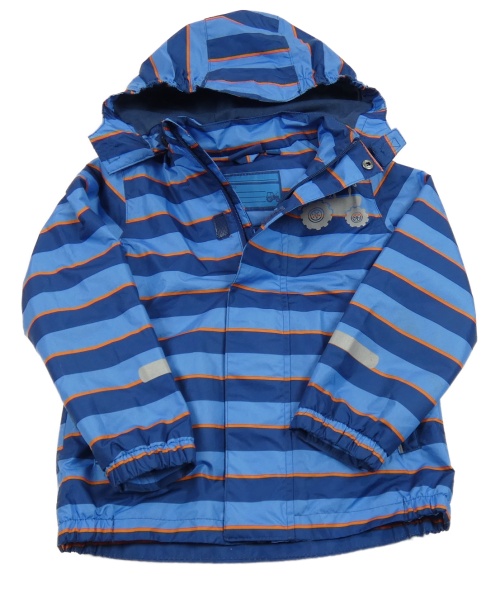 Modro-tmavomodro-oranžová pruhovaná šusťáková jarní bunda s kapucí Impidimpi