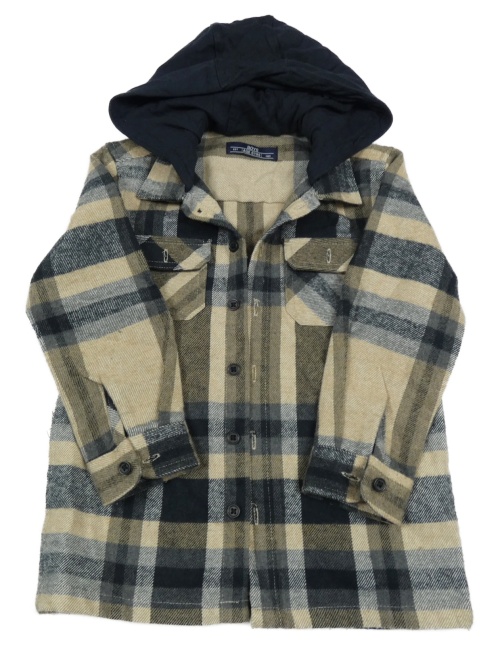 Hnědo-černo-bílá kostkovaná košilová bunda s teplákovou kapucí Matalan