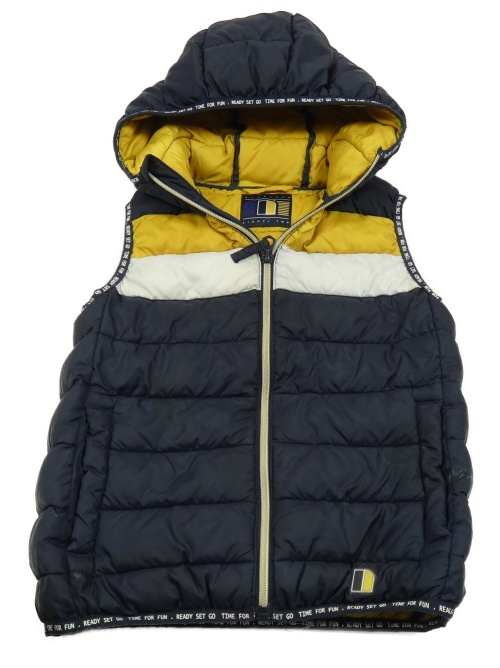 Tmavomodro-bílo-okrová šusťáková zateplená vesta s kapucí Next