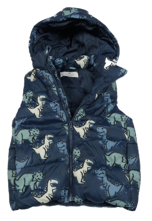 Tmavomodrá šusťáková zateplená vesta s dinosaury a kapucí H&M