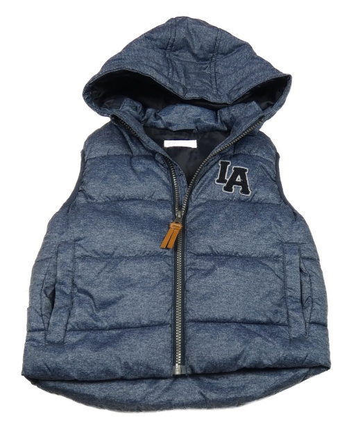 Tmavomodrá melírovaná šusťáková zateplená vesta s písmeny a kapucí H&M