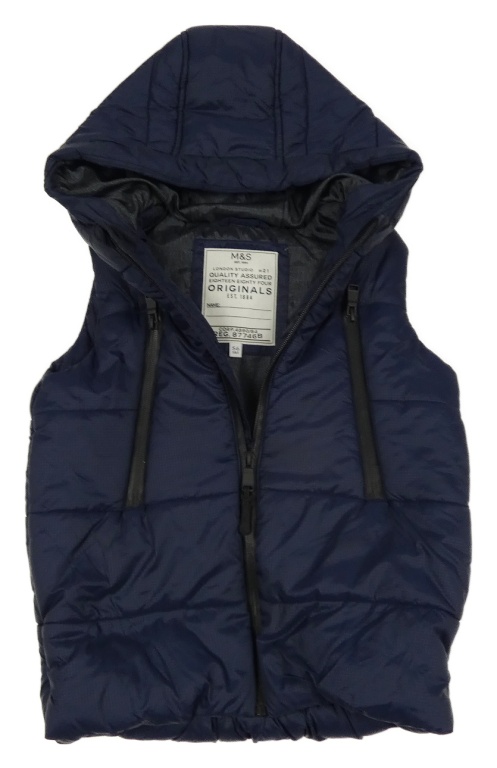 Nové - Tmavomodrá zateplená šusťáková vesta s kapucí M&S