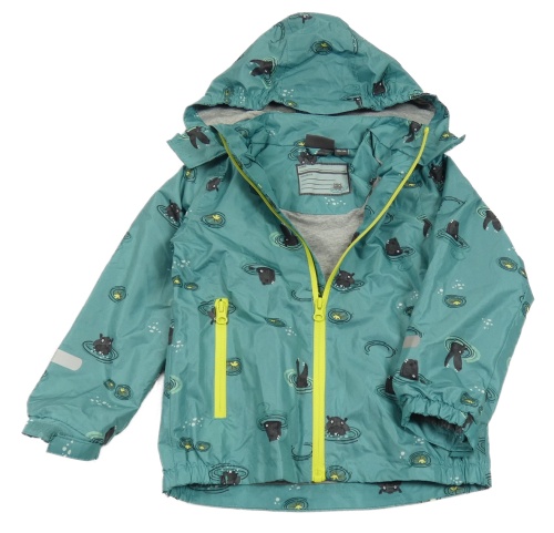 Zelená šusťáková jarní bunda s hrochy a kapucí Impidimpi