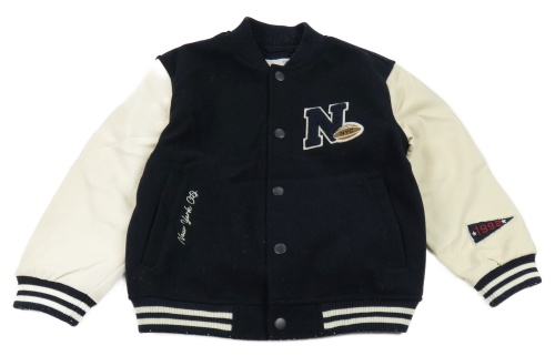 Černo-smetanový flaušovo/koženkový jarní bomber s písmenkem a míčem a pruhy H&M