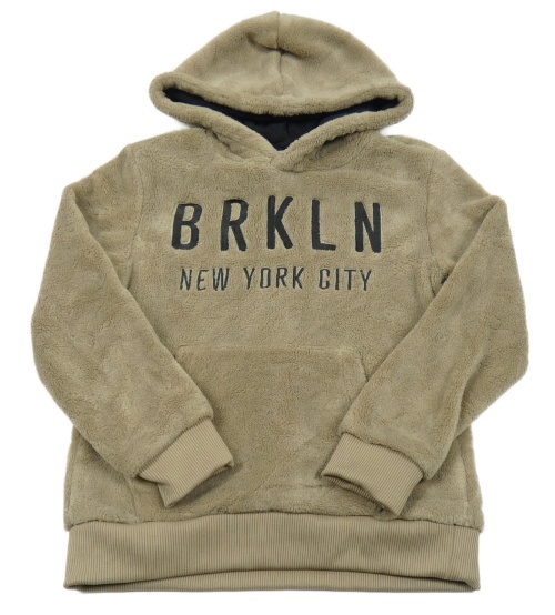 Hnědá chlupatá mikina s nápisem a kapucí Dopodopo