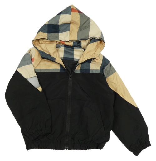 Černo-kostkovaná šusťáková podzimní bunda s kapucí Shein