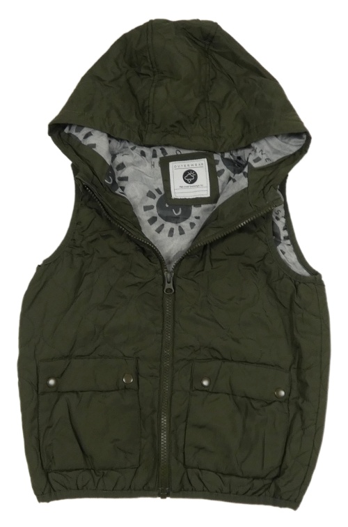Khaki šusťáková prošívaná zateplená vesta s kapucí Tu