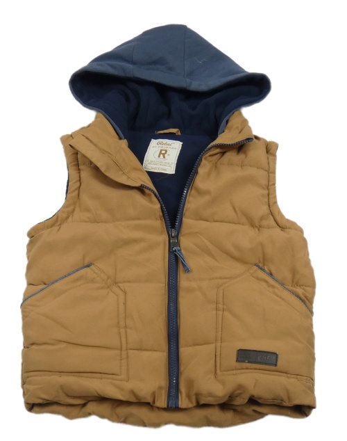 Béžovo-tmavomodrá šusťáková zateplená vesta s kapucí Rebel