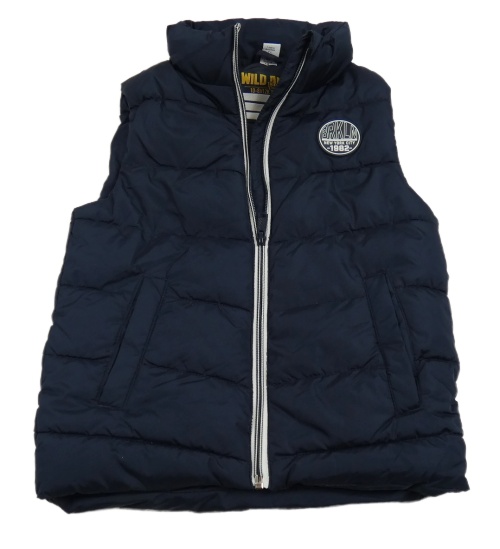 Tmavomodrá šusťáková zateplená vesta s nášivkou Dopodopo
