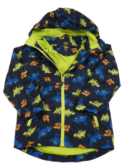 Tmavomodrá šusťáková jarní bunda s dinosaury a kapucí Kiki&Koko