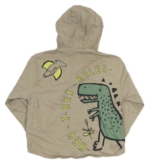 Béžová riflová košilová bunda s dinosaurem a kapucí George