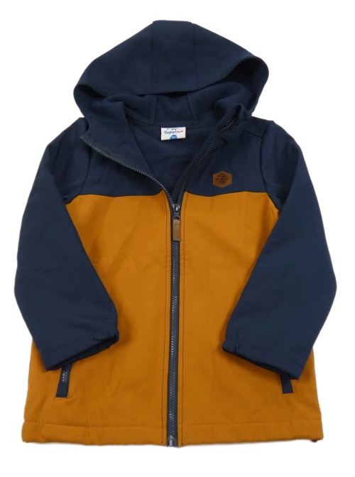 Medovo-tmavomodrá softshellová bunda s nášivkou a kapucí Topolino