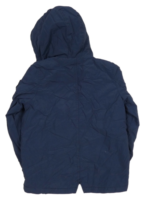 Tmavomodrá šusťáková zateplená bunda s kapucí