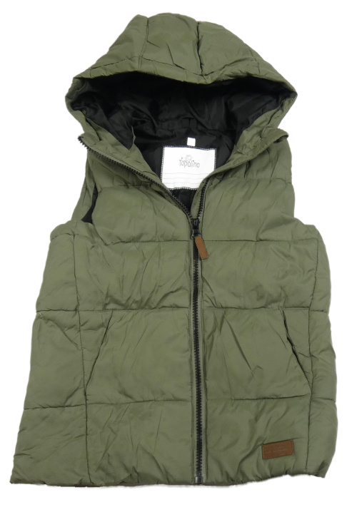 Khaki kostkovaná šusťáková zateplená vesta s nášivkou a kapucí Topolino