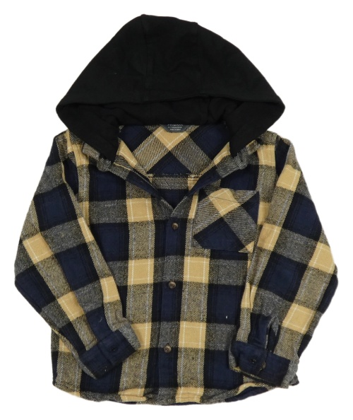 Béžovo-tmavomodro-černá kostkovaná košilová bunda s teplákovou kapucí Primark