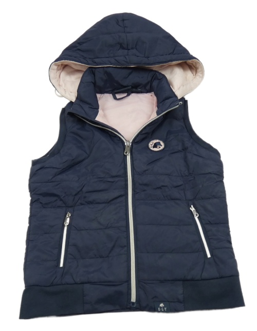 Tmavomodrá šusťáková zateplená vesta s kapucí
